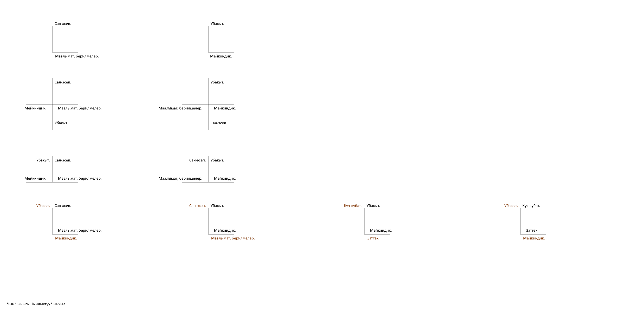 Мурунку жана мурдагы ойлорумду, кабарларымды, жазууларымды бул желе-барактык жыйынымды калыбына келтиргенде кайра коём жана жайгаштырам. Чын чыныгы чындыктуу чынчыл, түзүүчү же жөн эле түзгүч. Жаратылыш жашагысы келет, табият болгусу келет. Адам жана киши өскүсү жана чоңойгусу же жашаргысы келет. Келесоо болгондон кески-кылмышкер болгон жаман, коркок болгондон качкын болуп жүргөн жаман, билимсиз болгондон ыймансыз жана абийирсиз болгон жаман, чала аксак болгондон чыккынчы болгон жаман. Калпка, алдоого, жалганга ишенип жок болгончо, чындыкка тике жана бетке карап турган жана болгон жакшы. Айбан жана жаныбар болуп адилеттикти, акыйкаттыкты, азаттыкты, абийирдүүлүктү, адептүүлүктү туткан жакшы, адаммын жана кишимин деп акмактыкты, абийирсиздикти, акылсыздыкты кылганча. Айбан болсом, ишенип күтөмүн, адам болсом, умтулуп жана аракет кылып, келемин же барып жетемин. Үмүтүм болсо беремин, мага үмүт берсеңиз, келип сиз менен болуп сактаймын. Жакын болсом да, алыс болсом да байкооңузду билгим келет. Бир бүтүн бекем болгон баалуу, баамдуу, барктуу, беделдүү, буулугуп, бозоруп, бытырап, бөлүнүп, бүлүнүп, бузулганча. Бир бүтүн бекемдикке, бардык бүткүлдүккө, байлыкка, бийликке билим багыттайт, байгеге бурат, белек(терди) берет. Билимдүү баатырга бакыт буйрулат. Билимдүүлүктө (билимде) бакыт болот. Билимдүү бүт баарын баштап, болуп, бүтүрөт. Билим - байлыктын, бийликтин, башкаруучулуктун, буйруучулуктун булагы, бутагы. Жакшы жаманды жеңет, накта-нукура, накыл(дуулук) начарды утат. Мен жакшымын деп мактанганча, жакындарга же башкаларга жана калгандарга жакшыны каалоо (туура,) ылайык жана ырас. Жөнөкөй жана жеңил жооп: Жек көрсөңүз, жазылыңыз, жоголгуңуз келсе, жадоону жана жүдөөнү желдетиңиз жана жоюңуз, жаңылганыңызды жабыңыз, жорук-жосун(ду) жыйыңыз жана жыйнаңыз, жайдарылыкты жайыңыз, жакшы көрсөңүз, жолугушалы жана жакын же жаныма жатыңыз, жактырганды жактайм, жылуулукту жана жумшактыкты жаркындыктай жана жыпарлыктай жандап жүрөм, жыргал жашоого жетишем - бирок мен антип айтпайм окшойт. Чың болсом, чыдайм, чыйрак болсом, чамдайм, чынчыл болсом, чакырам, чечен болсом, чымырканам, чебер болсом, чыгармада чагылдырам, чоро болсом, бүт бийик чокуларга чыгам жана ашып өтөм, бүт баарынын борборуна жана чордонуна келем жана жетем, чоң жана чеги, чени, чети жок чынчдыкты чогултам. Түзүүчү же түзгүз болгон да жакшы, сүйүүчү же сүйгүч болгон да жакшы. Чын, чыныгы, чындыктуу, чынчыл. Бул кабар 18, он сегизден ашкандарга: Түзүшүү да жакшы, сүйүшүү да жакшы. Сүйүшүү - бул сүйлөшүү, кабар алышуу, маектешүү, аңгемелешүү, баарлашуу-баардашуу, багышуу, карашуу, кам көрүшүү, ыракаттануу-ыракаттанышуу, бактылууланышуу, берилүү, бөлүшүү, биргелешүү, болушуу, билишүү, сезишүү, сакташуу, коргошуу, куткарышуу. Кошумча сиңишүү менен сергишүү жана сыйышуу менен сыйлашуу же сырдашуу жана самашуу менен сылашуу жана сыймыктанышуу деген да сөздөр бар экен, мен аларды жыйырманчы, 20, XX-кылымда жана экинчи, 2, II-миң жылдыкта эле билгем. Чын, чыныгы, чындыктуу, чынчыл же туура, так, түз, тик, төп түзгүч ([талапка тең тете татыктуу] төбөлүк, түптүк, түйүндүк, тектик, тегиз, тынч, толук туруктуу такай түбөлүк). 23:36:36.259299 6.10.2022 бейшемби GMT + 6 (BSK). Жаратуучу (алл*х жана ку*ай) берет жана алат, аял жана айым алат жана берет, эркек алат жана өзүнө калтырат. 11:36:40.463800 1.11.2022 шейшемби GMT + 6 (BSK) (Мурунку жа
